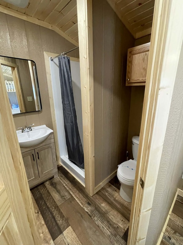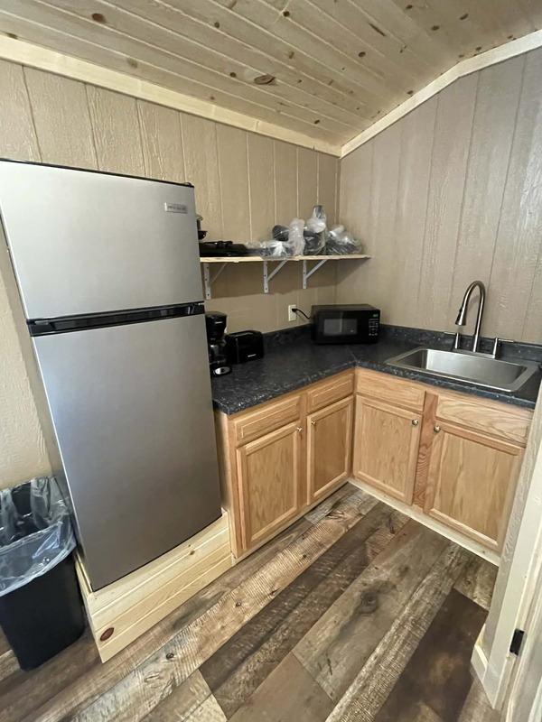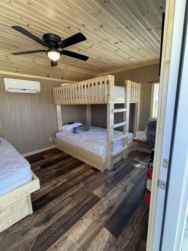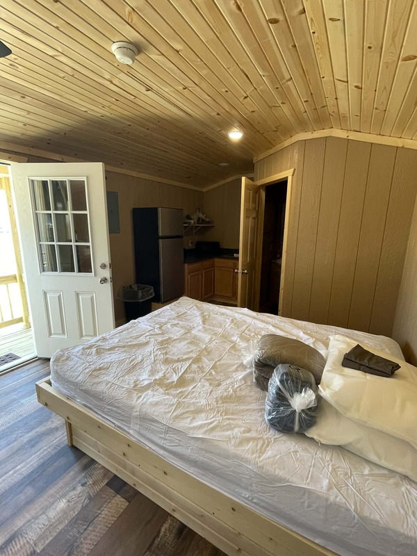 Queen bed with bunk (full over queen), linens, towels, dishes, a kitchenette with a FULL fridge, full bath, flat-screen TV All Deluxe Cabins have a private bathroom which includes full size tub/shower unit. **NO PETS-NO SMOKING** **The first night is $115 and is due upon reservation. There is 2 night minimum stay requirement.** **Note: You may cancel your reservation 14 days prior to your arrival date without penalty by contacting the Cloud 9 Ranch gatehouse. No refunds will be given if cancelled less than 14 days prior to your arrival date**